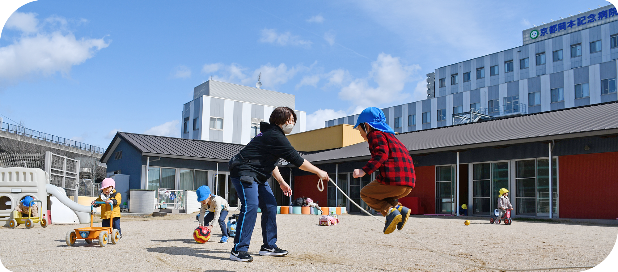 - 親同士の交流があり、違う病棟のママ友もできました。仕事だけでなく、育児の情報交換ができる仲間ができたのはうれしい収穫です。子どもの急な体調不良にも隣接する京都岡本記念病院でスムーズに専門医の診察を受けることができ、いざという時の安心感は絶大です。