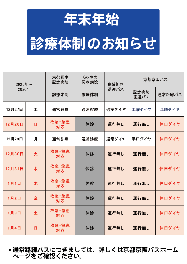 日・祝・年末年始(12/30~1/3) 救急・急患は24時間365日対応