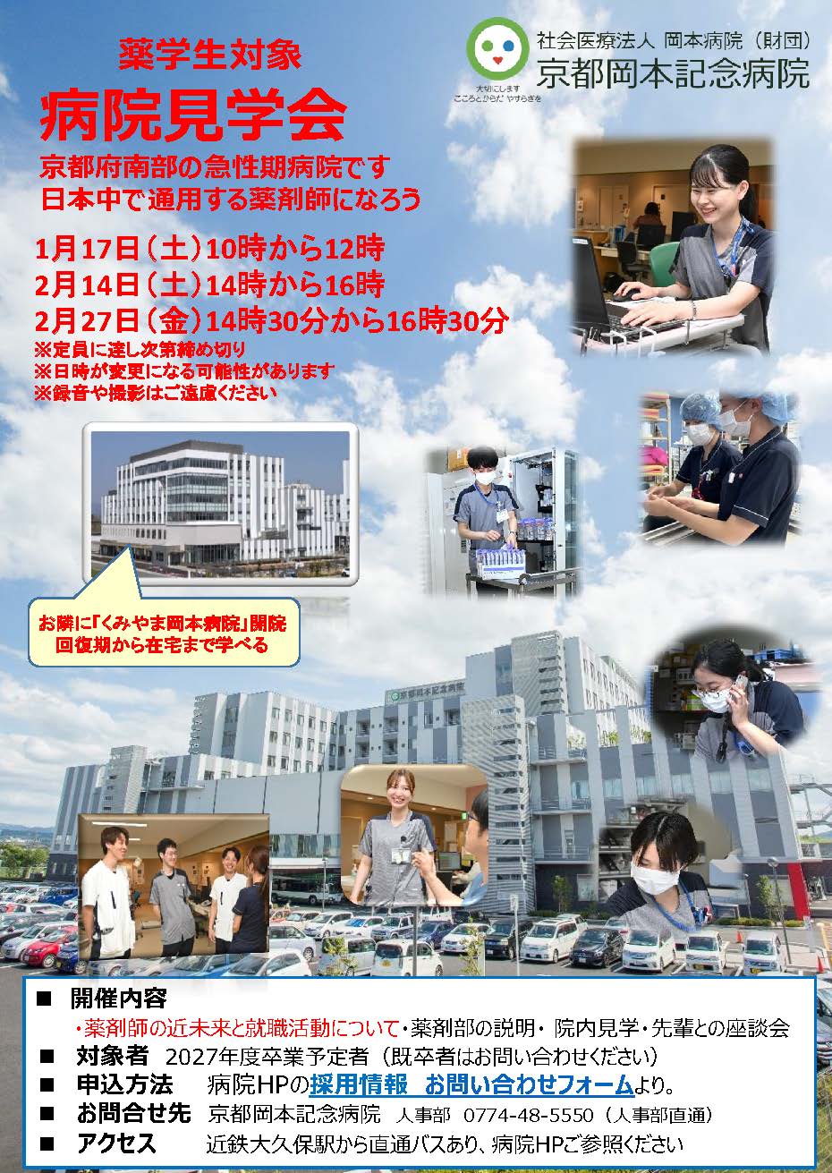 ≫ 「薬学生対象の病院見学会 2026年1月~2月の日程(2027年卒業予定者)」