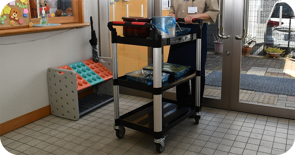 お昼が近づくと、ほかほかのランチが病院内の職員レストランから届きます。